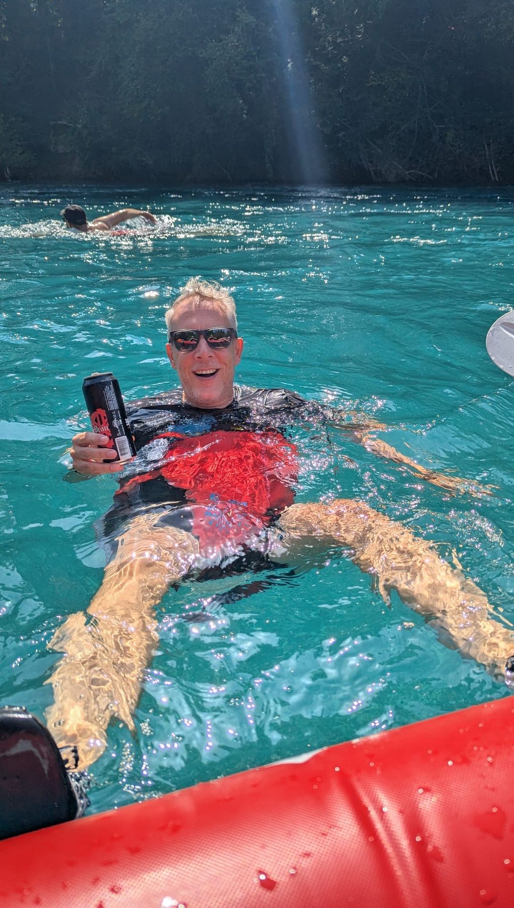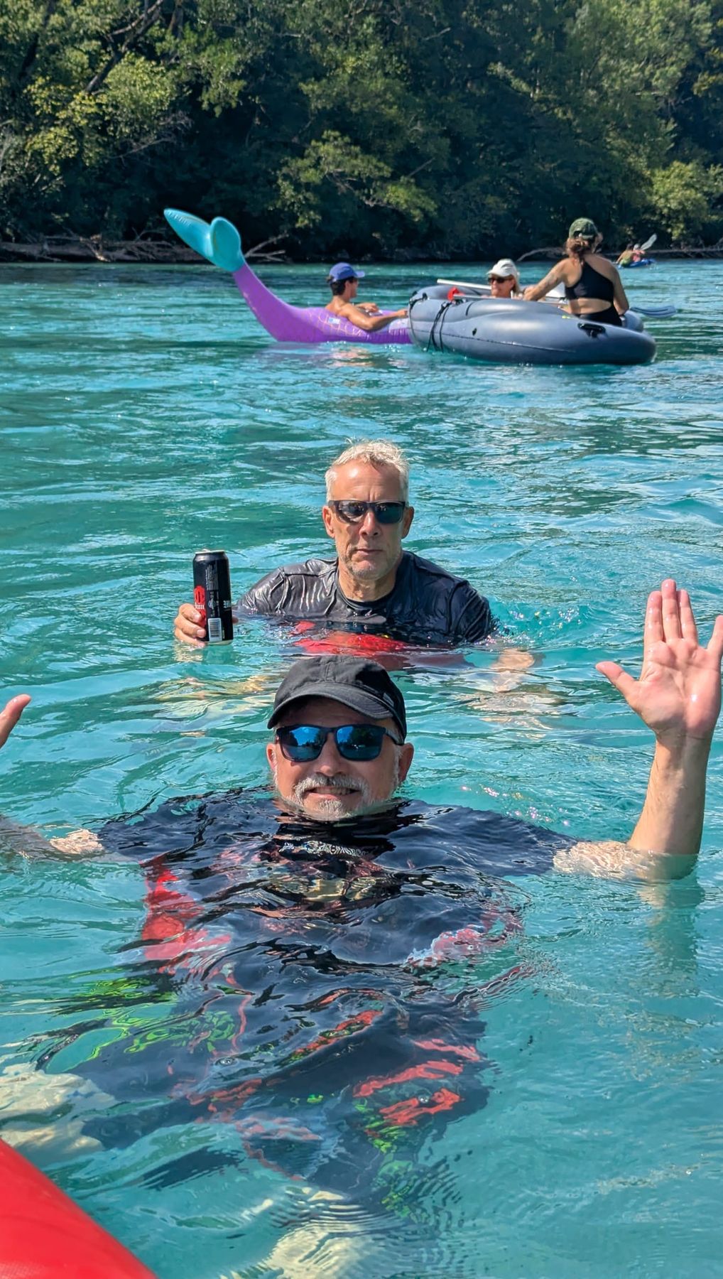 Auch sehr beliebt war die «Wasser-Windel"-Methode, bei der man sich die Schwimmweste um die Hüfte bindet und so wie eine Boje auf dem Wasser mittreibt.